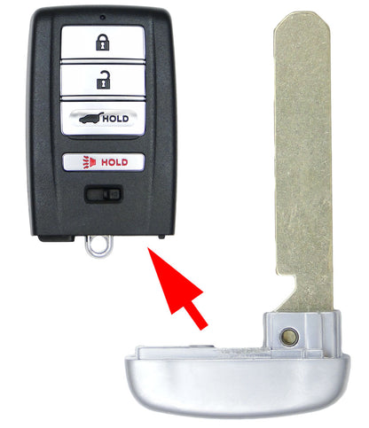 One Emergency Insert Key blade for Acura Smart Remotes - brand new, aftermarket. Same as OEM Part Number: 35118-TY2-A00, 35118TY2A00. It is just an emergency key used to open the door. It will not start the car. This key blank will require cutting to fit your vehicle. Remote is NOT included with a purchase. This emergency key will fit remotes with the following: