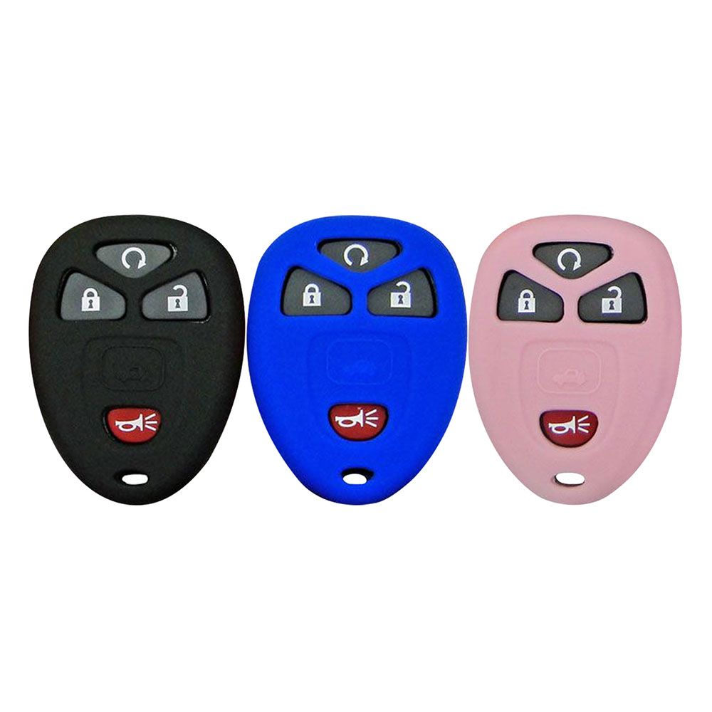 Buick, Chevrolet, Cadillac, GMC, Pontiac, Saturn Remote cover -for late models 4 and 5 button key fobs (with remote start). Silicone remote key cover is a great way to protect and personalize your GM keyless entry remote. Those remotes with engine start option are very expensive to replace. Protect your transmitter against damage. These covers slip over your remote. Just take off your key ring, slip the cover over your remote and put the key ring back. This is a remote cover only, remote is not included. This product offers a simple solution to protect, distinguish, and prevent broken & scratched up car & truck remotes. Added features of this product include: damage prevention, replacement costs, accidental engagement of control functions, ability to reattach a broken remote, and personalization through a variety of colors. NOTE: These covers are branded with our carandtruckremotes.com logo on them.