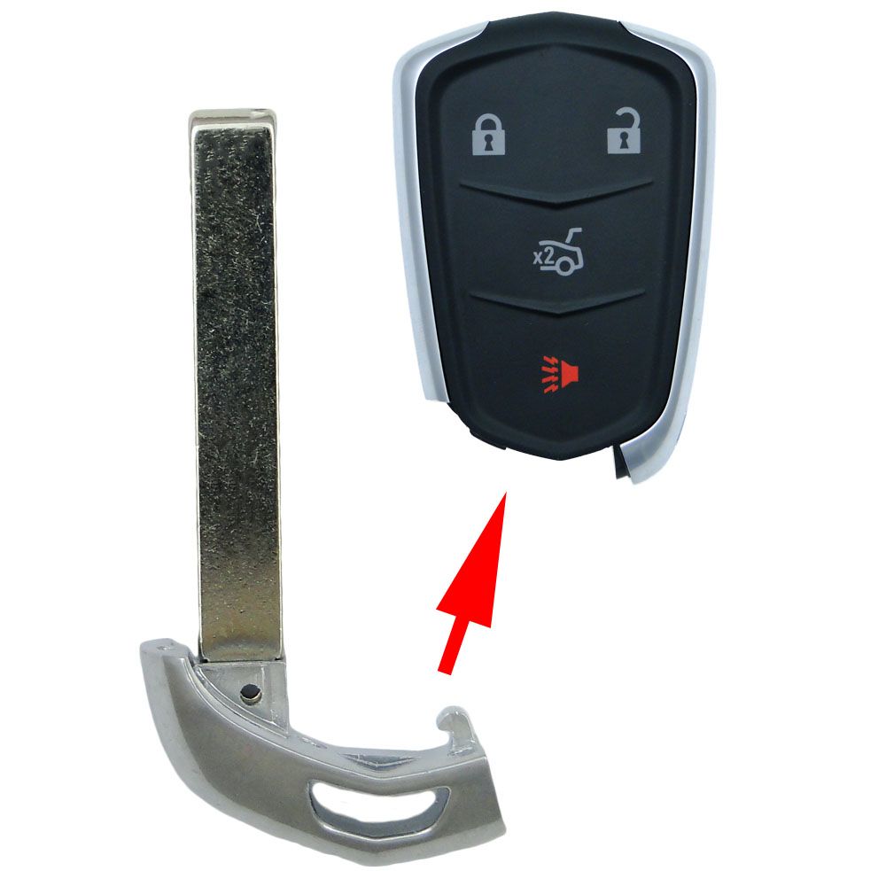 One Cadillac Emergency Insert Key blade for Smart Remotes - brand new, aftermarket. Same as GM Part Numbers: 5922070, 22984994, 22894661. This key HU100 will fit Cadillac smart proximity remotes with FCC ID: HYQ2AB, HYQ2ES. It is just an emergency key used to open the door. It will not start the car. This key blank will require cutting to fit your vehicle. Remote is NOT included with a purchase.