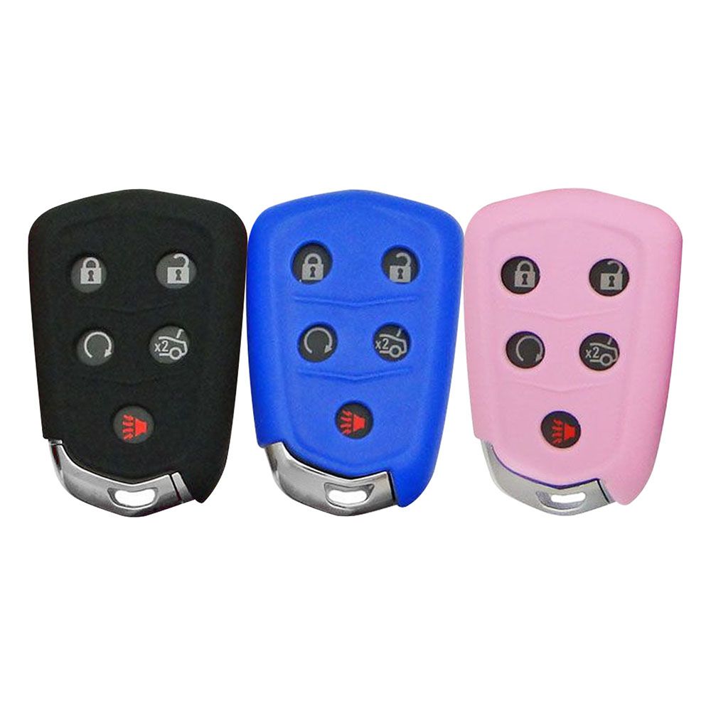 Cadillac Smart Keyless Entry Remote cover - fits remotes with 5 buttons. Silicone remote cover is a great way to protect and personalize your keyless entry remote. Those remotes are very expensive to replace. Protect your remote against damage. These covers slip over your remote. Just take off your key ring, slip the cover over your remote and put the key ring back. This is a remote cover only, remote is not included. This product offers a simple solution to protect, distinguish, and prevent broken & scratched up car & truck remotes. Added features of this product include: damage prevention, replacement costs, accidental engagement of control functions, ability to reattach a broken remote, and personalization through a variety of colors.