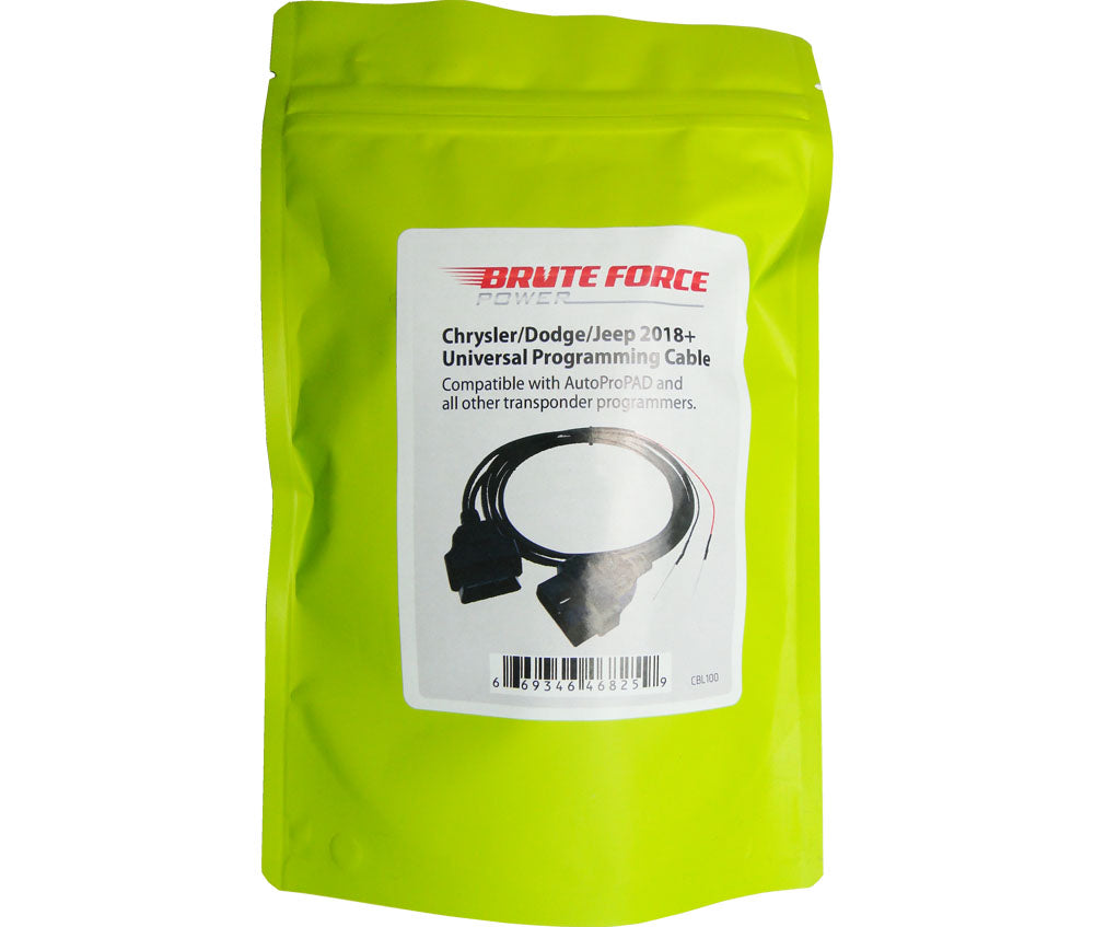 Chrysler, Dodge and Jeep 2018 + Universal Programming Cable - made by Brute Force. This bypass cable has been certified for the AutoProPAD, AutoProPAD LITE and AUTEK IKEY820.This cable has been designed to interface almost all automotive transponder programmers that have the capability of prgramming 2018+ Chrysler vehicles. It functions by intercepting your programmer's CAN high and low signals and passing them though the attached probes. Depending on your plan of attack, you can tap the CAN wires directly in the STAR module, in the vehicle instrument cluster or at the wires which transport the information between the STAR module and the immobilizer. The OBD throughput will feed 12V back to your programmer to keep it charged if that feature is supported by your machine.