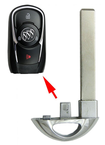 One Emergency Insert Key blade for Buick Smart Remotes - brand new, aftermarket. Same as OEM Part Numbers: 13510389, 5929947. This key will fit remotes with the following FCC ID: HYQ4EA, HYQ4AA. It is just an emergency key used to open the door. It will not start the car. This key blank will require cutting to fit your vehicle. Remote is NOT included with a purchase.