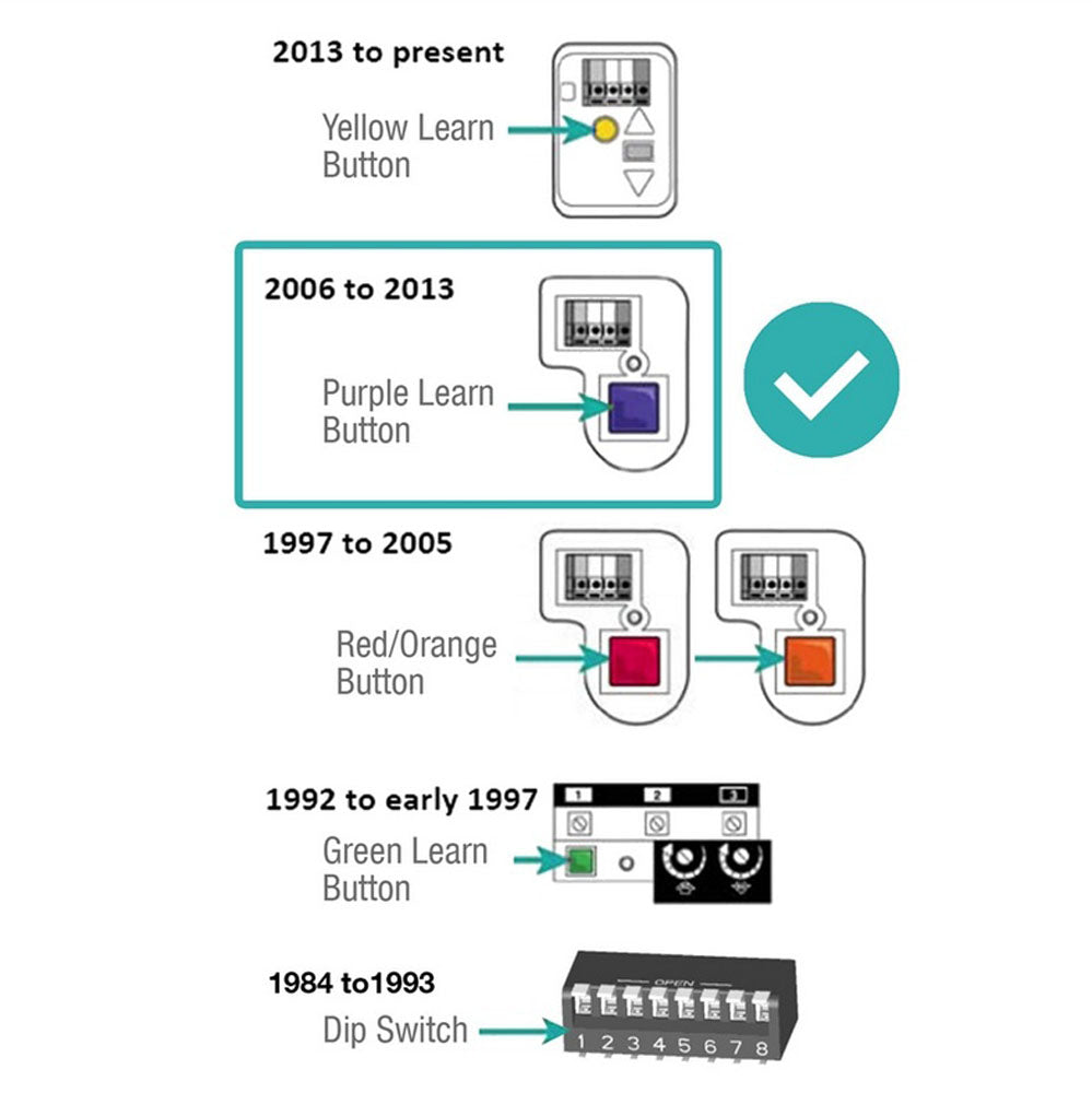 - Operate up to 2 separate garage doors (large button and aux), programming instructions included.