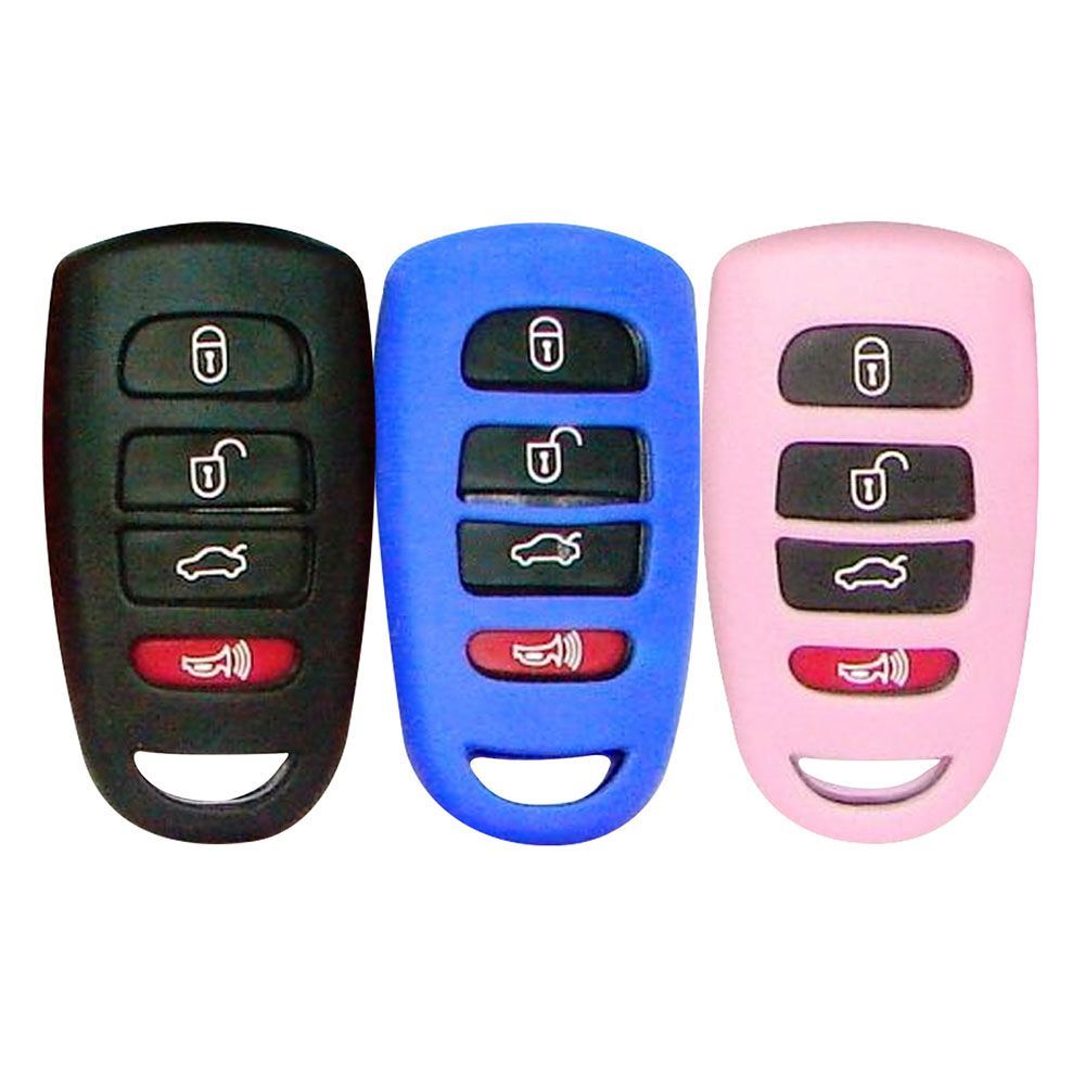 Hyundai, Kia Keyless Entry Remote rubber cover - fits remotes with 4 buttons. Silicone remote cover is a great way to protect and personalize your keyless entry remote. Those remotes are very expensive to replace. Protect your remote against damage. These covers slip over your remote. Just take off your key ring, slip the cover over your remote and put the key ring back. This is a remote cover only, remote is not included. This product offers a simple solution to protect, distinguish, and prevent broken & scratched up car & truck remotes. Added features of this product include: damage prevention, replacement costs, accidental engagement of control functions, ability to reattach a broken remote, and personalization through a variety of colors. NOTE: These covers are branded with our carandtruckremotes.com logo on them.
