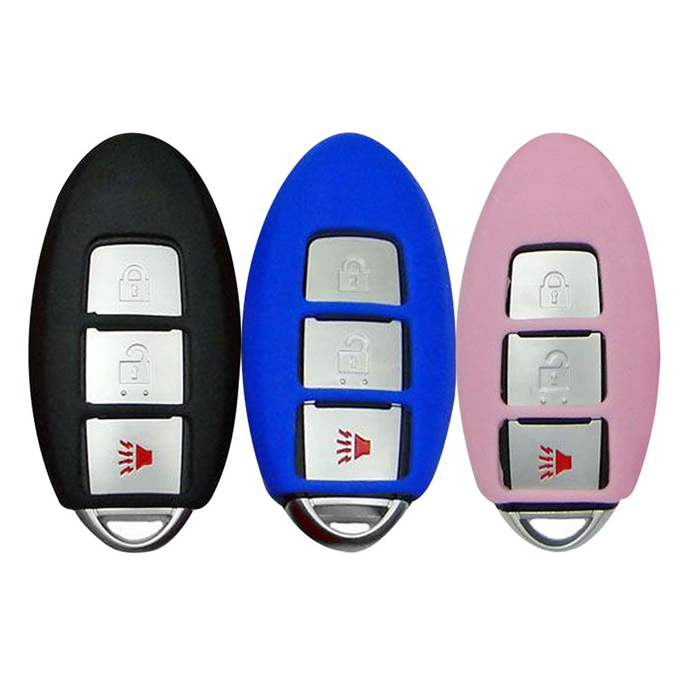 Nissan, Infiniti Smart Remote key rubber cover - fits remotes with 3 buttons. Silicone remote cover is a great way to protect and personalize your keyless entry remote. Those remotes are very expensive to replace. Protect your remote against damage. These covers slip over your remote. Just take off your key ring, slip the cover over your remote and put the key ring back. This is a remote cover only, remote is not included. This product offers a simple solution to protect, distinguish, and prevent broken & scratched up car & truck remotes. Added features of this product include: damage prevention, replacement costs, accidental engagement of control functions, ability to reattach a broken remote, and personalization through a variety of colors. NOTE: These covers are branded with our carandtruckremotes.com logo on them.