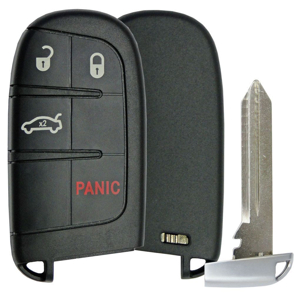 Brand new replacement Chrysler Dodge Smart Remote Shell with emergency insert key - aftermarket case (NO logo on the back). No remote or battery included. You can simply replace your old case of your old remote. Just take the insides out and put them in this shell. If you take the remote board from your old working remote and put it in to this new case - there is no programming needed. Please note that the emergency key needs to be cut to work with your door lock. This 4-button case fits remotes with FCC ID: M3N40821302 , M3N-40821302