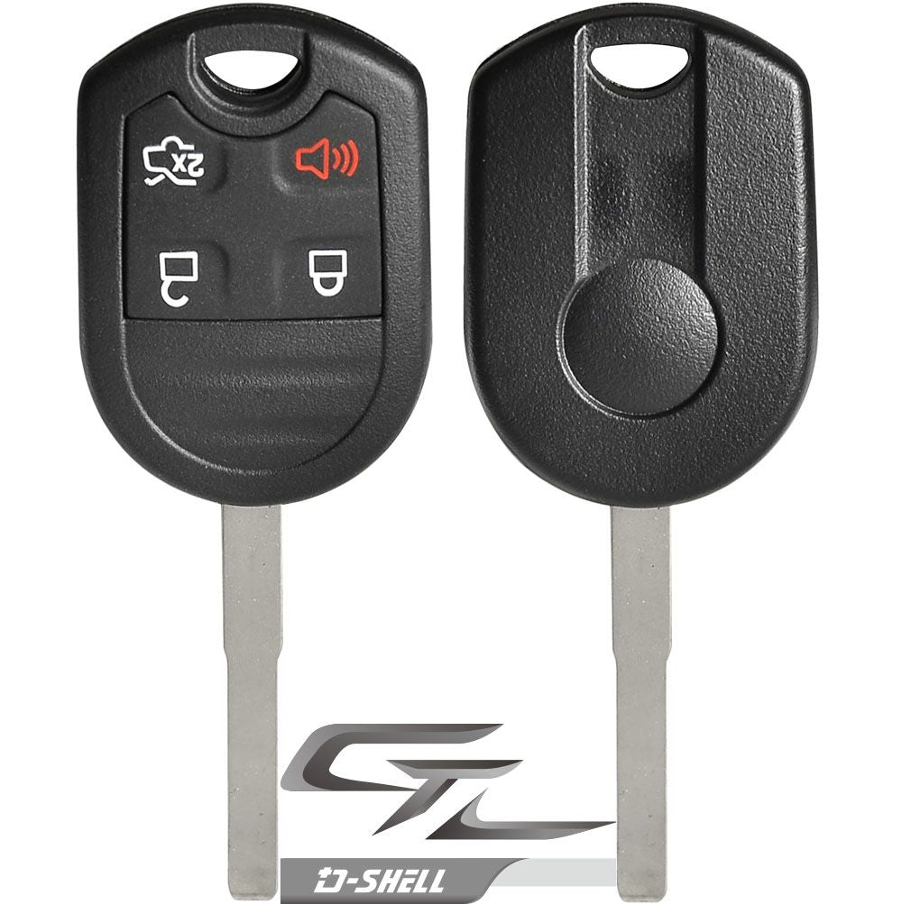 One Indestructible replacement remote D-SHELL case for FORD remote head key OEM Part: 164-R7976, Strattec: 5922964. High security side mill blade. No remote or transponder chip included. If your key broke off, or the case is broken, you can simply replace your old case/key on your old remote. The hardest part is to open your existing key in order to remove the remote. Your original Ford case is glued. You will have to use a utility knife in order to open your broken key. Just take the insides out (green remote board) and put them in this new shell. Our D-SHELL replacement case with does NOT need any glue. You just need to squeeze both parts together. When it clicks you know you are done. Now just take it to an automotive locksmith or hardware store to have the key cut to match your existing key. If you take the remote with transponder chip from your old working remote and put it in to this new case - there is no programming needed. Aftermarket item made by GTL Global Tescpro. Please compare your remote button configuration with this unit to make sure it fits. Replacement for Ford remote head keys with FCC ID: CWTWB1U793