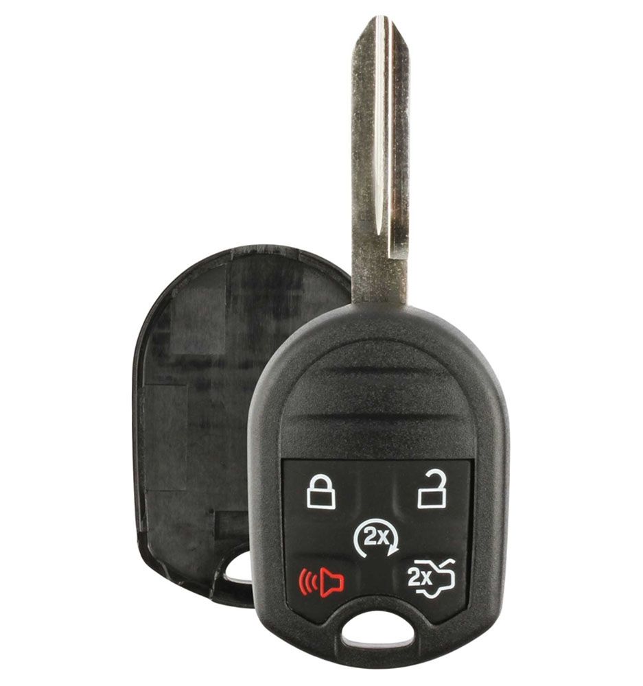 One Indestructible replacement remote D-SHELL case for FORD remote head key OEM Part: 164-R8000, strattec: 5921467. No remote or transponder chip included. If your key broke off, or the case is broken, you can simply replace your old case/key on your old remote. The hardest part is to open your existing key in order to remove the remote. Your original Ford case is glued. You will have to use a utility knife in order to open your broken key. Just take the insides out (green remote board) and put them in this new shell. Our D-SHELL replacement case with does NOT need any glue. You just need to squeeze both parts together. When it clicks you know you are done. Now just take it to an automotive locksmith or hardware store to have the key cut to match your existing key. If you take the remote with transponder chip from your old working remote and put it in to this new case - there is no programming needed. Aftermarket item made by GTL Global Tescpro. Please compare your remote button configuration with this unit to make sure it fits. Replacement for Ford remote head keys with FCC ID: OUC6000022