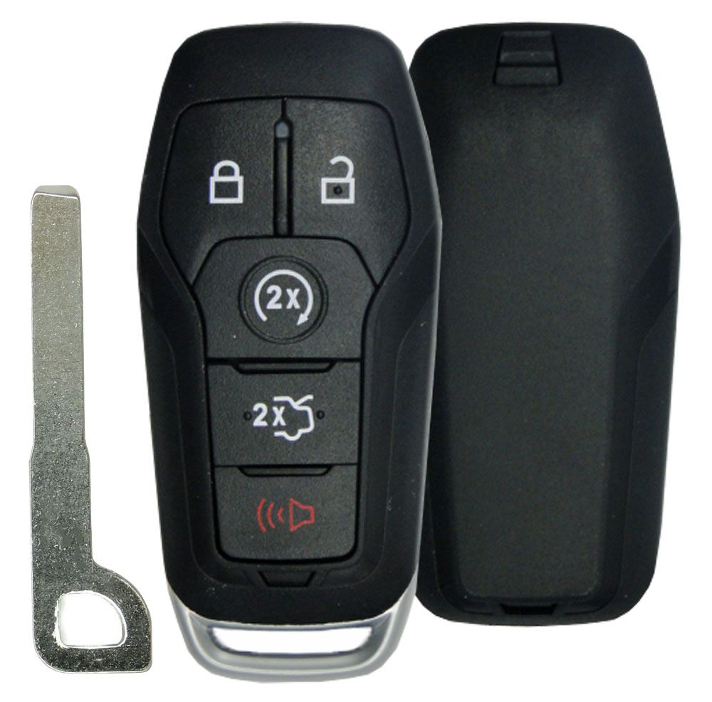 One Replacement Remote shell case for FORD / LINCOLN Smart Remote with 5 buttons - brand new, aftermarket with uncut emergency insert key included. If your case is broken, you can simply replace it. The hardest part is to open your existing remote in order to remove the board with batteries. Just take the insides out (green remote board) and put them in this new shell. Now just take it to an automotive locksmith or hardware store to have the key cut to match your existing key. There is no programming needed. Please compare your remote button configuration with this unit to make sure it fits. Replacement for Ford remote with: